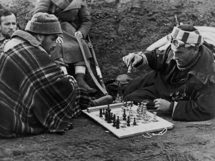 Robert Capa: Republican militiamen playing chess at the front, The Spanish Civil War, 1936.